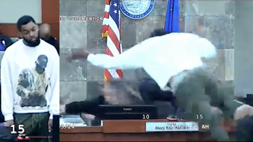 A violent Las Vegas suspect rushed a judge and beat her in the courtroom