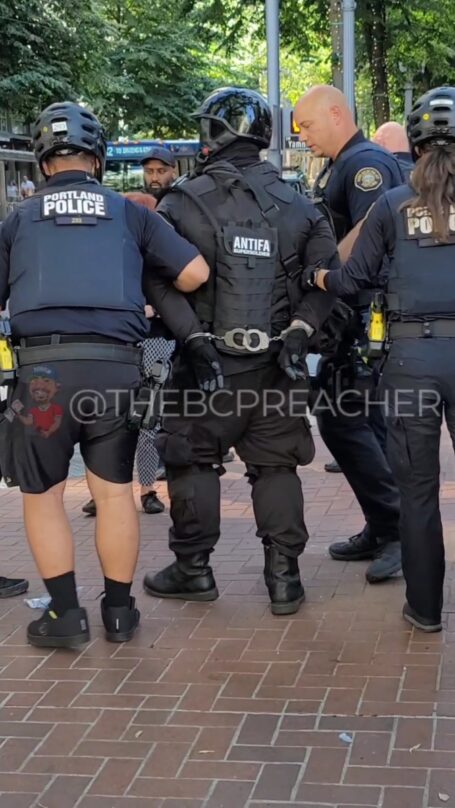 Violent trans Portland Antifa member Isabel Rosa Araujo (formerly Phillip Haskins-Delici) was arrested on July 13, 2024 in downtown over a violent attack on a woman. Araujo was wearing an Antifa uniform and carrying a chemical spray weapon affixed…
